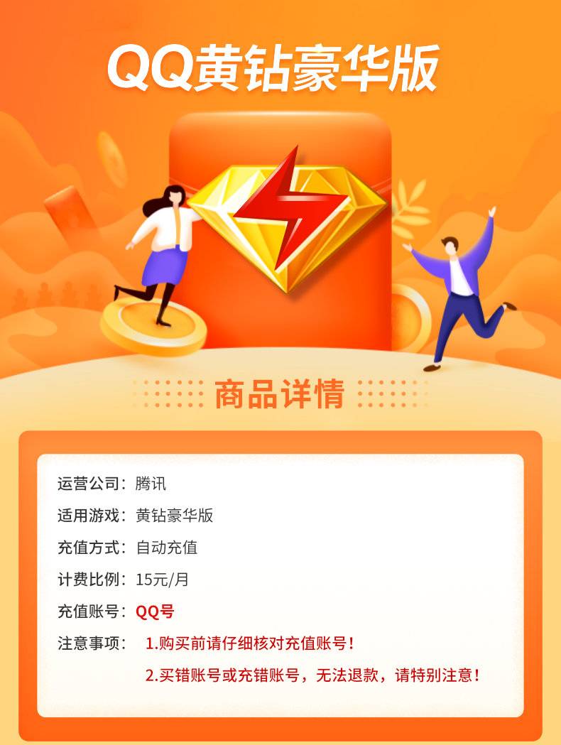【官方直充】QQ豪华黄钻会员3个月-智充权益