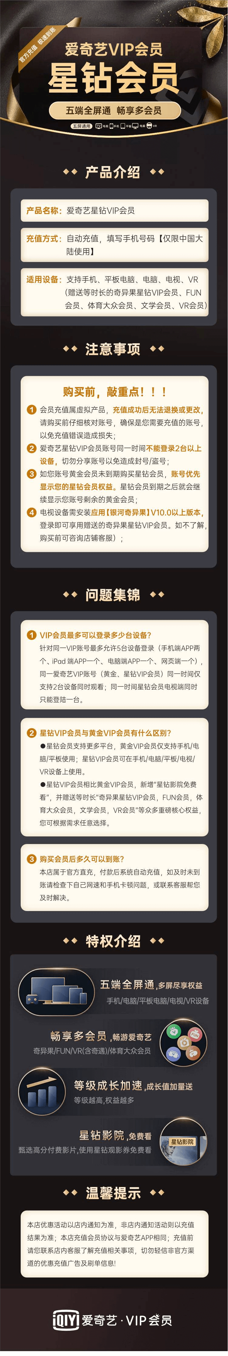 【官方直充】爱奇艺五屏通用星钻会员3个月--仅淘宝/闲鱼-智充权益