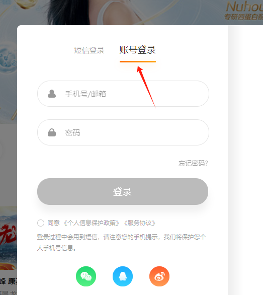 账号选择账号密码方式登陆